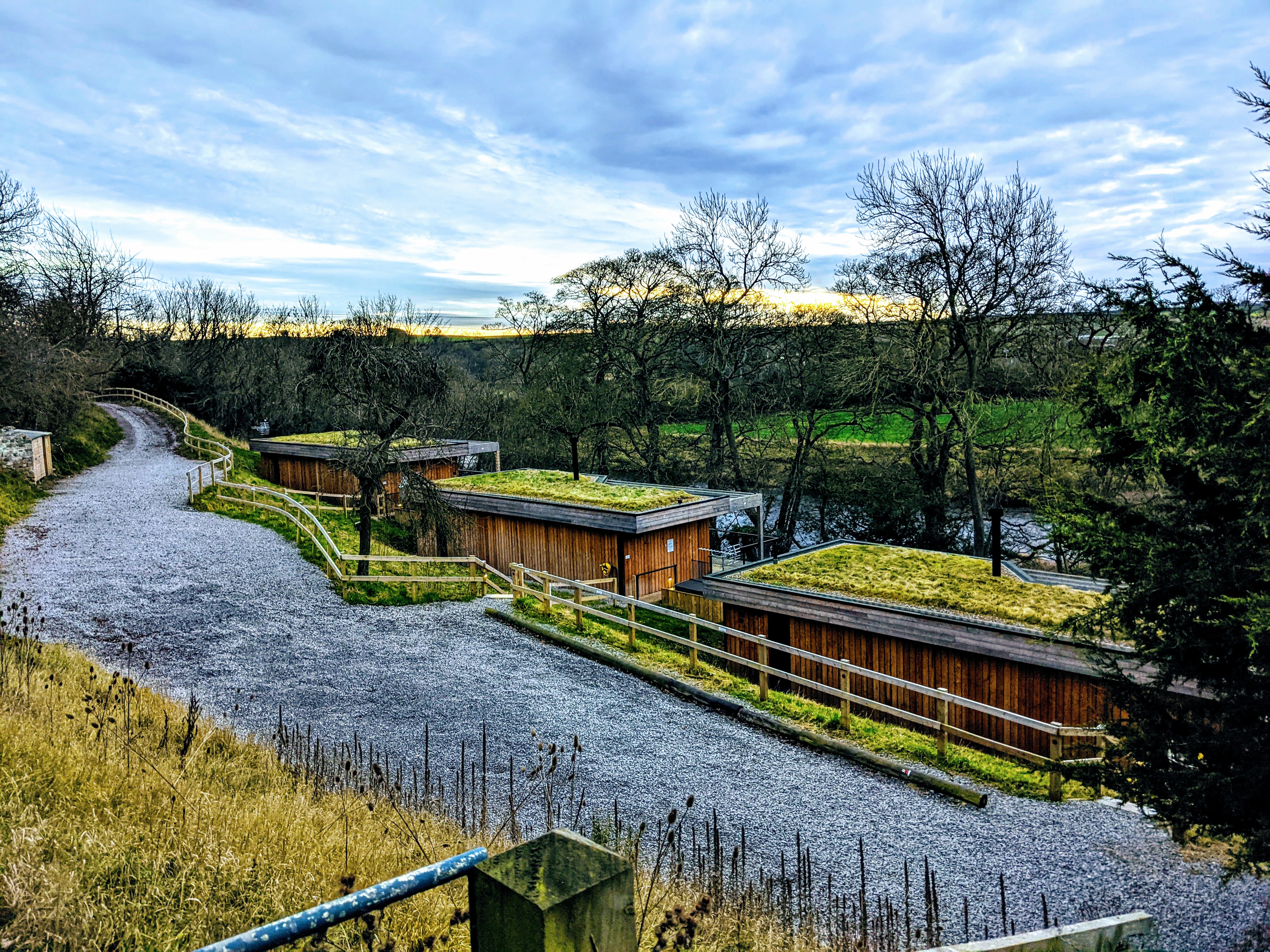 Able to sleep four - ideally a two-plus-two, each lodge sits on a slope, facing the river. With steps down to two of them and a sloped gravel path down to the other, each has two double/twin bedrooms, two shower/WC rooms (one en-suite in the smaller bedroom), fully-equipped kitchens with dishwasher, WiFi, large-screen TV and stunning glass doors providing you with ever-changing seasonal views to the South across the river Tees. And right outside, there's the riverside path for that first thing in the morning, or last thing at night, walk with the dog.