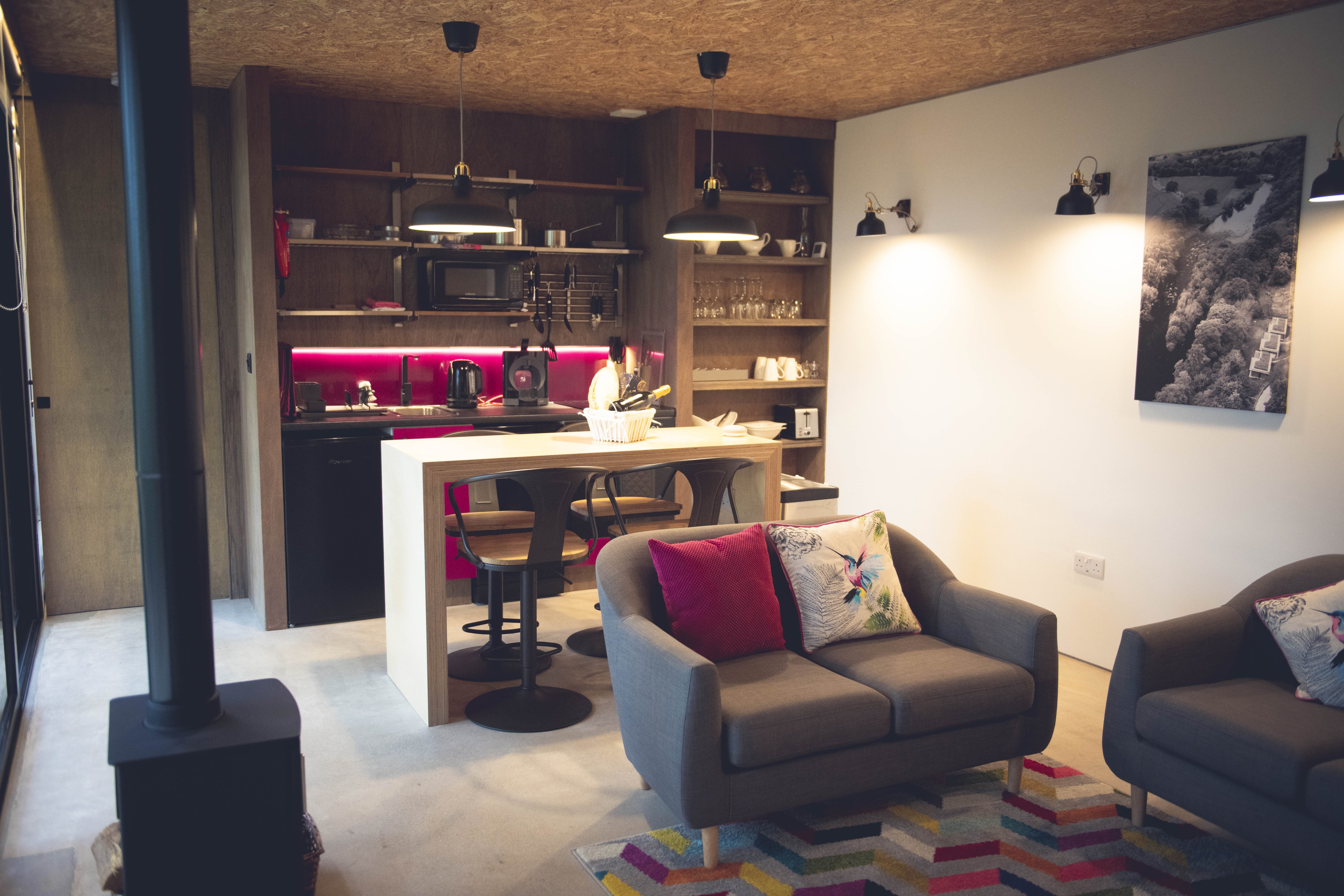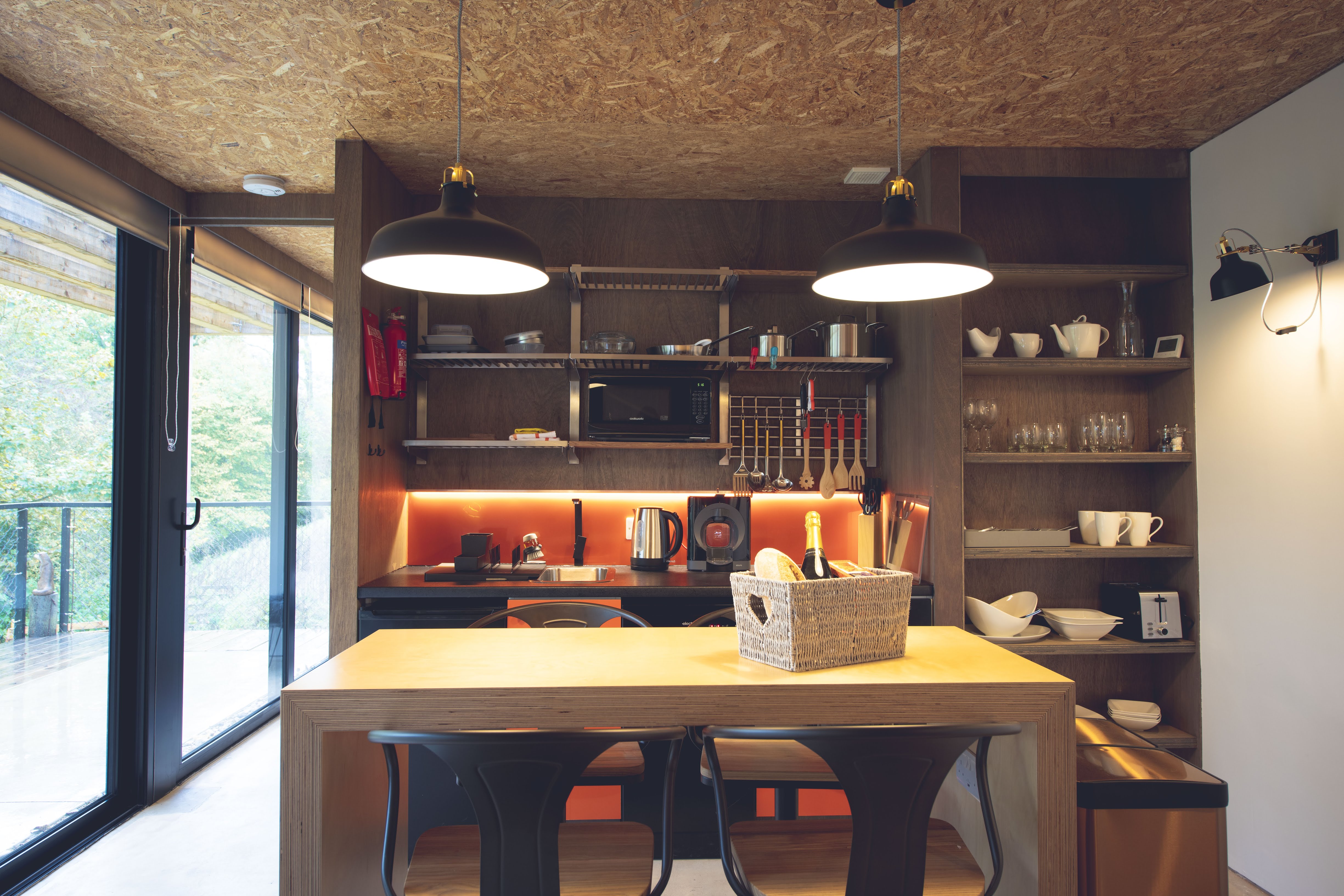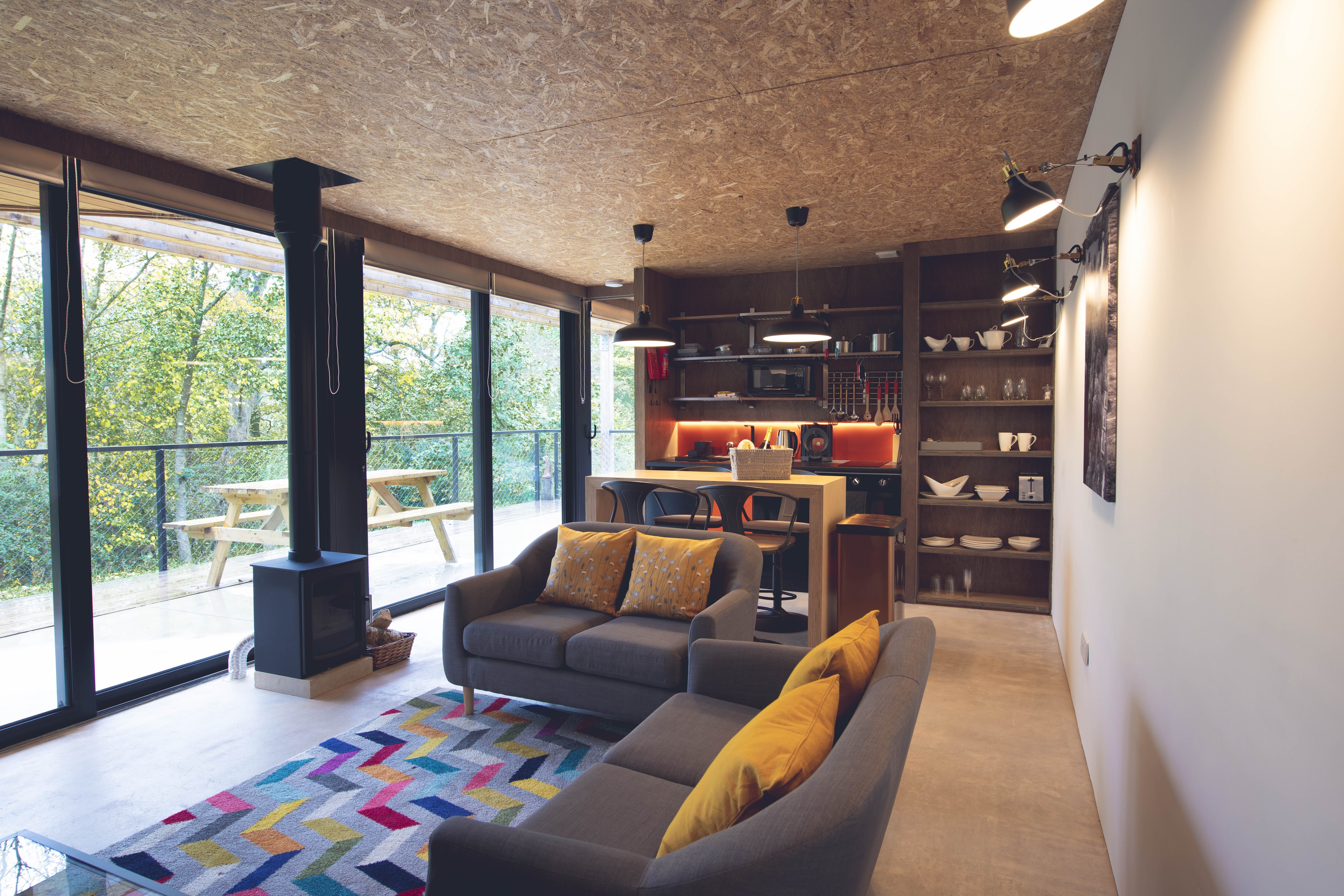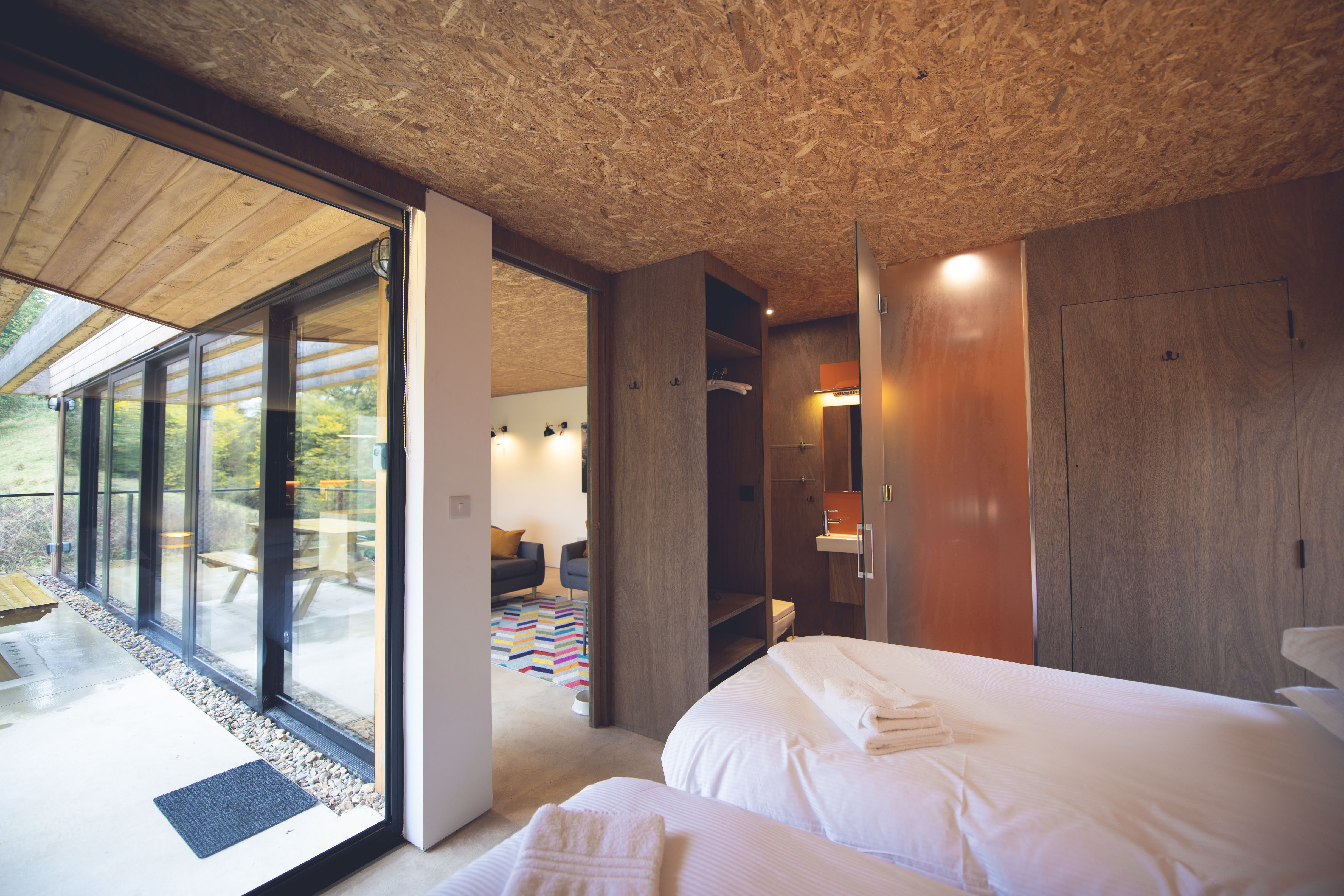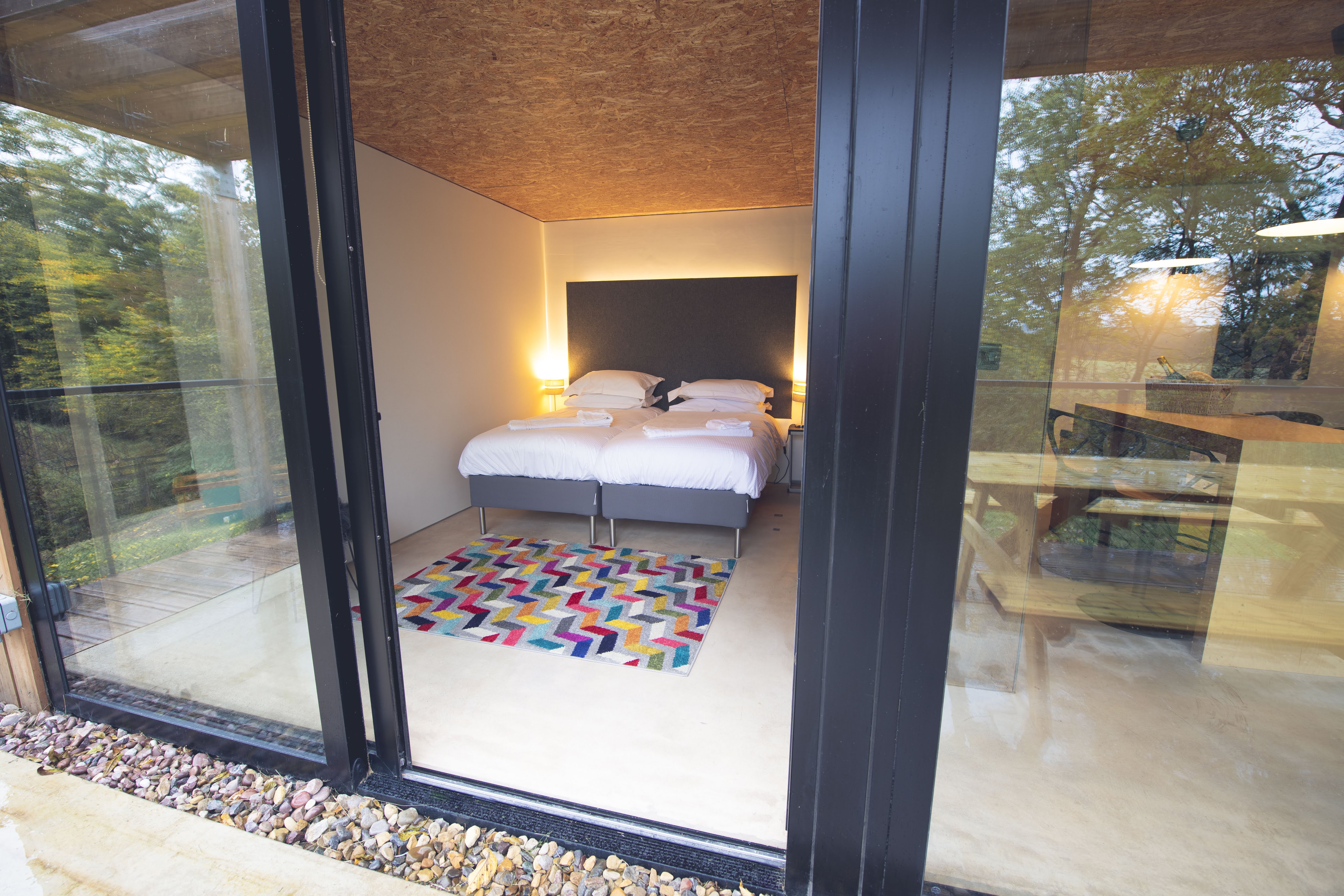 To the side of each lodge is a discreet hot tub, placed to keep you private from your neighbours, where you can lie back and stare at the stars in the dark rural skies, or watch the river glide by.